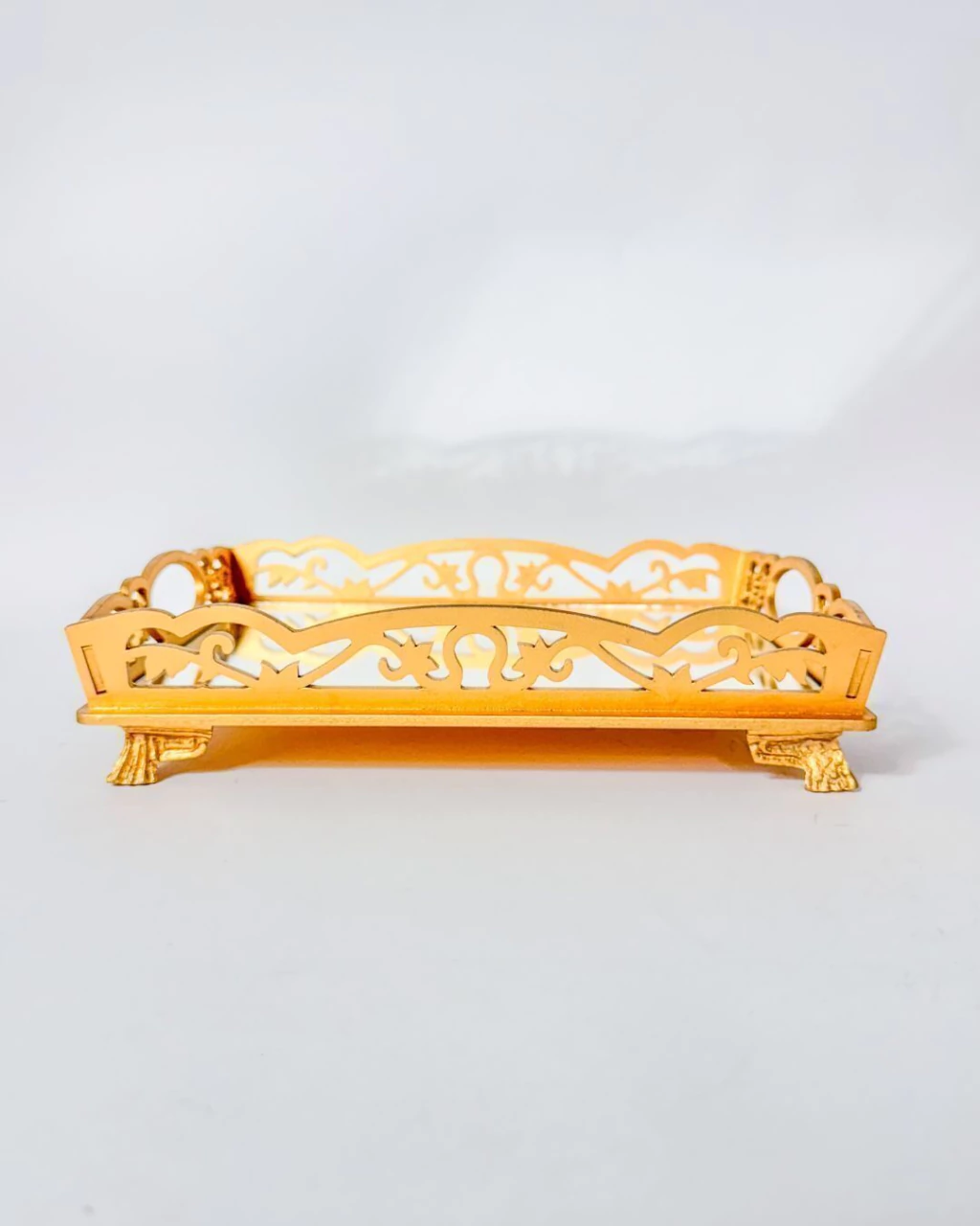 Coloque a bandeja sobre bancadas, aparadores ou móveis. Organize seus aromatizadores, frascos decorativos, sabonetes ou acessórios sobre ela para criar um cantinho encantador e funcional.
